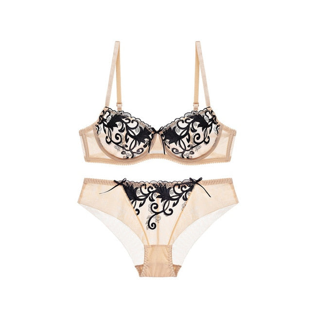Cheeky Ultra-Thin See-Thru Embroidered Bra And Panty Set