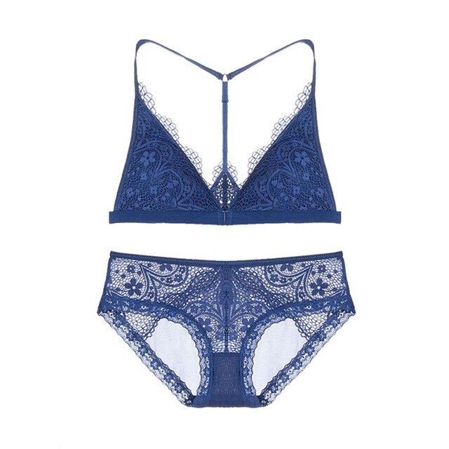 Casual Sheer Lace Front Clasp Y-line Bra With Matching Lacy Panty